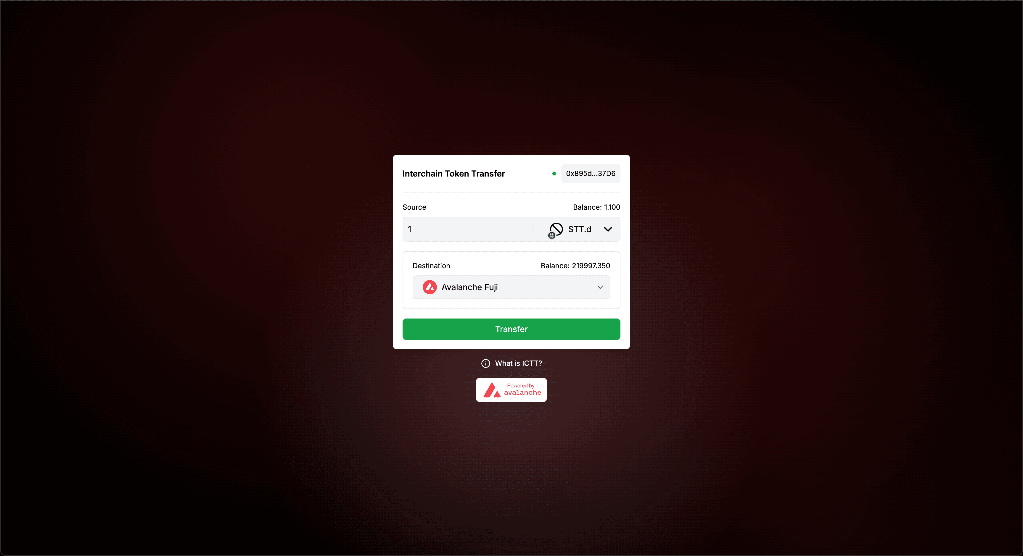 In this section, you’ll learn how to deploy your own ICTT frontend using the BuilderKit and pre-configured tokens and chains. Follow these steps to quickly set up and test your own ICTT frontends with Avalanche L1s.